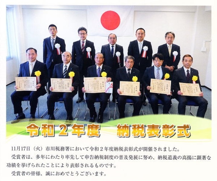 国税庁 市川税務署より税務署長感謝状を受ける。